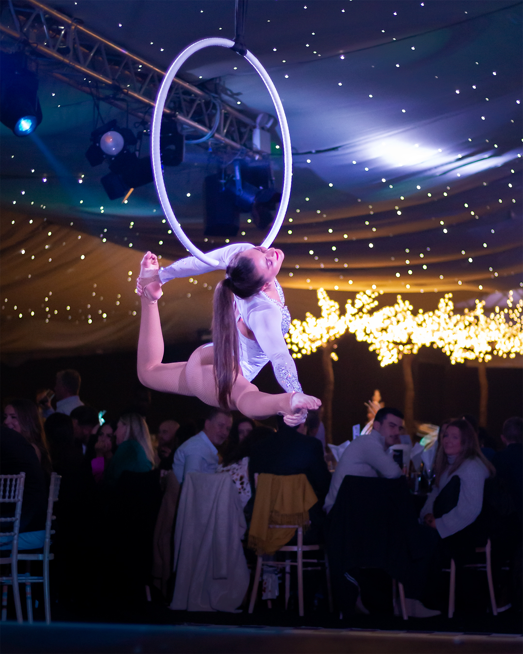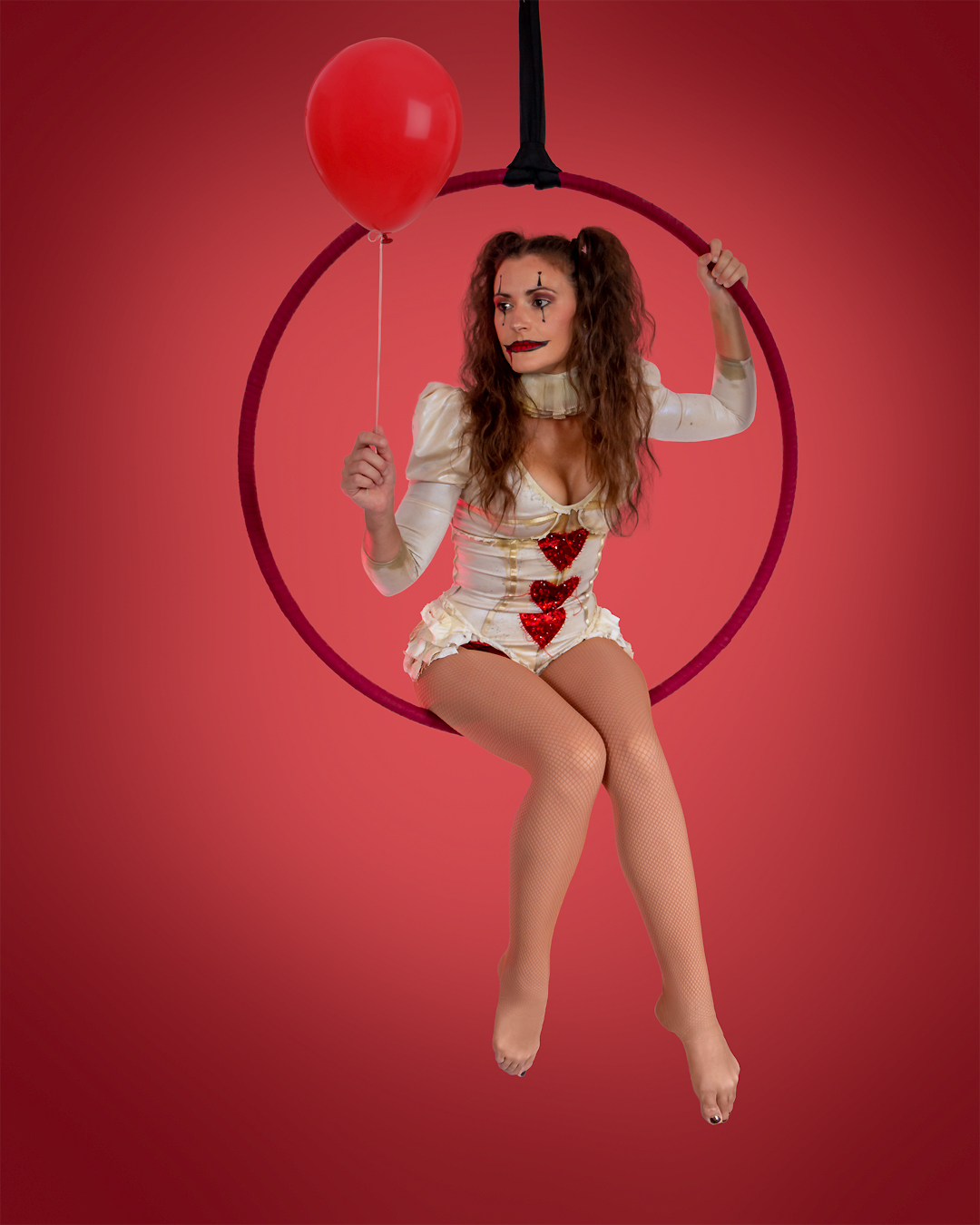 Daniela is also an aerialist, she started training aerial hoop and silks with the company Liberi Di in the 2012 and since then she continued her studies in London at My Aerial Home, with international teachers.